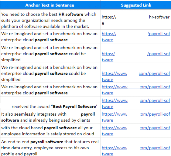 For example, if the content is about “How do HR management systems work,” the links would be given to all the blogs and landing pages around HR but not to the Payroll page, even if that was used in the content somewhere.