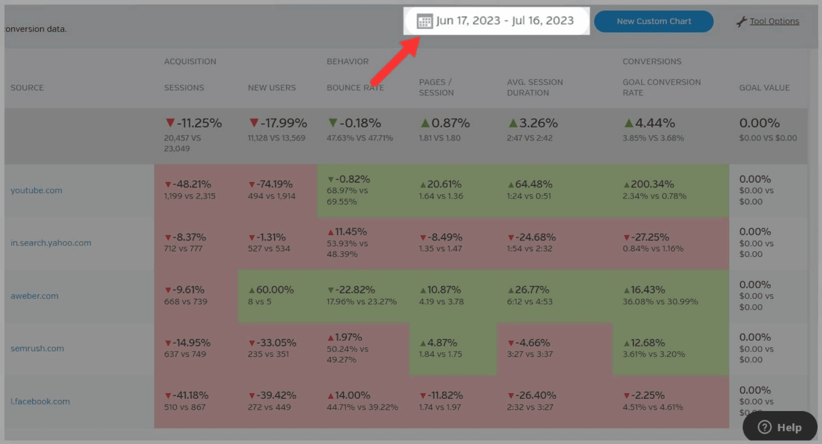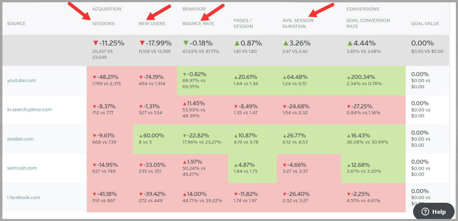 This means you can take a quick glance at all of your Google Analytics metrics in one place.