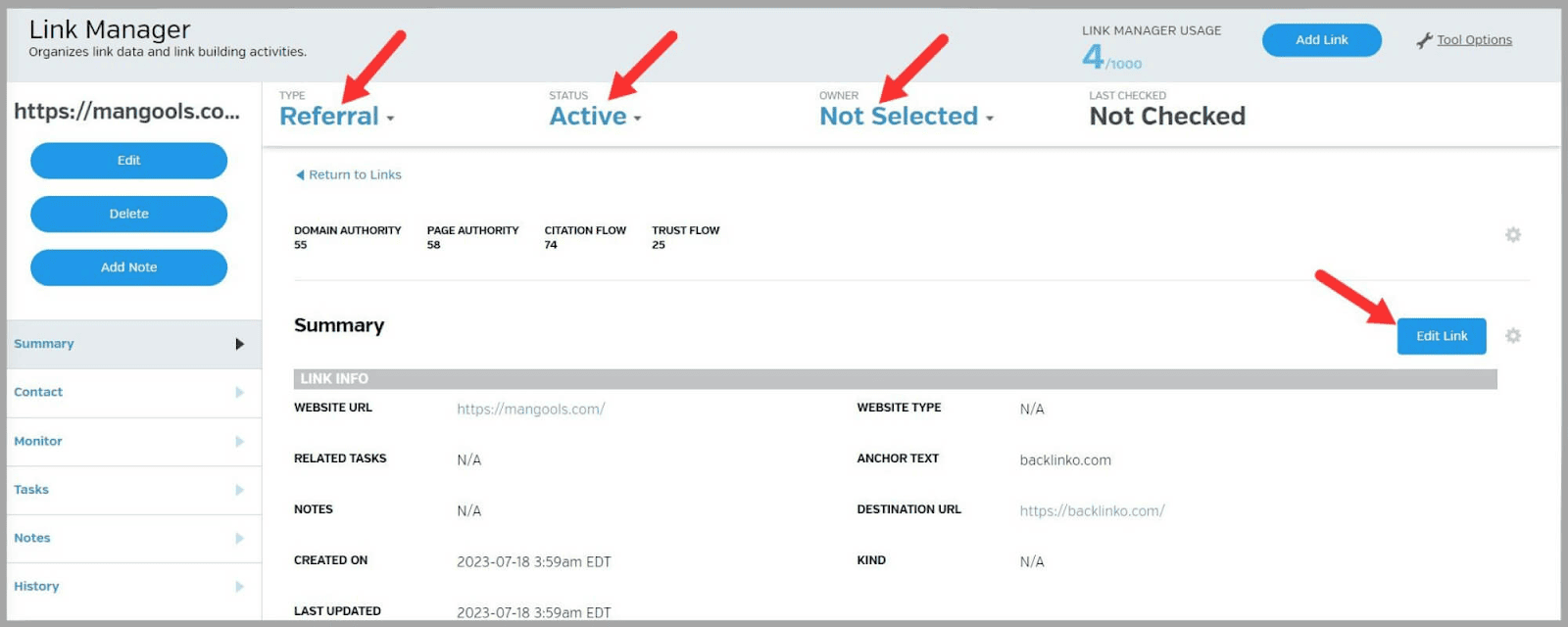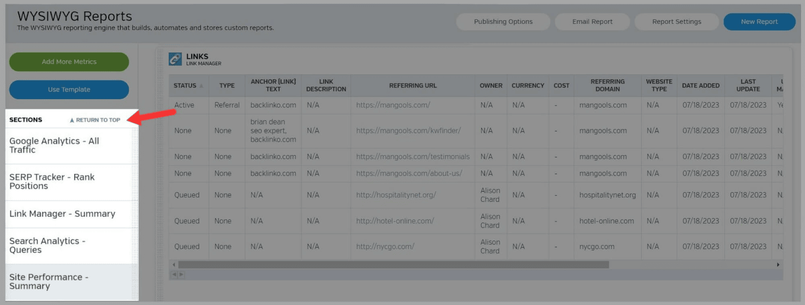 This allows me to quickly see how many backlinks I’ve gained or lost over the years.
