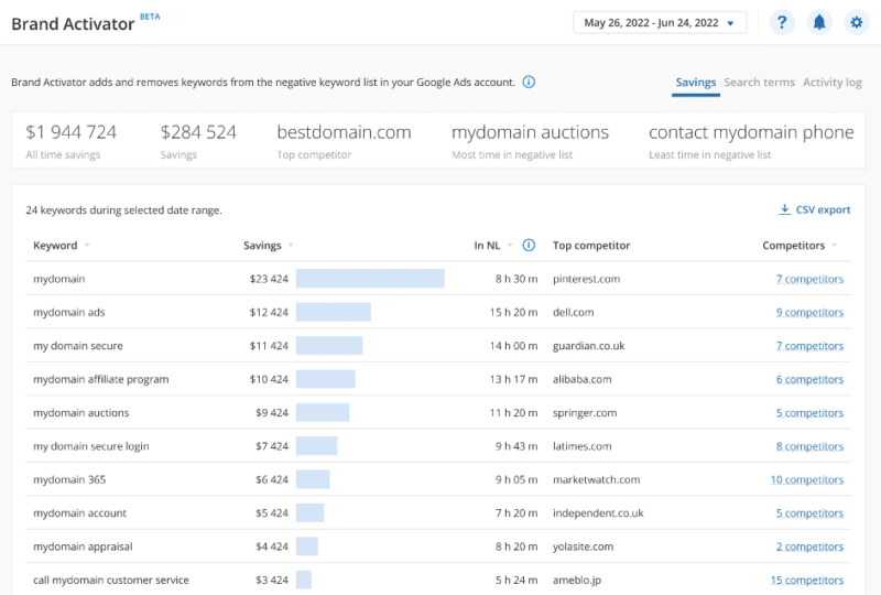 This automatic toggle switch can save a huge amount of money, especially if your search landscape is volatile. For example, by identifying multiple high-volume lone ranger terms, Avanti West Coast was able to automatically stop needlessly spending budget on those terms and saved 32% each month without relinquishing clicks to competitors.