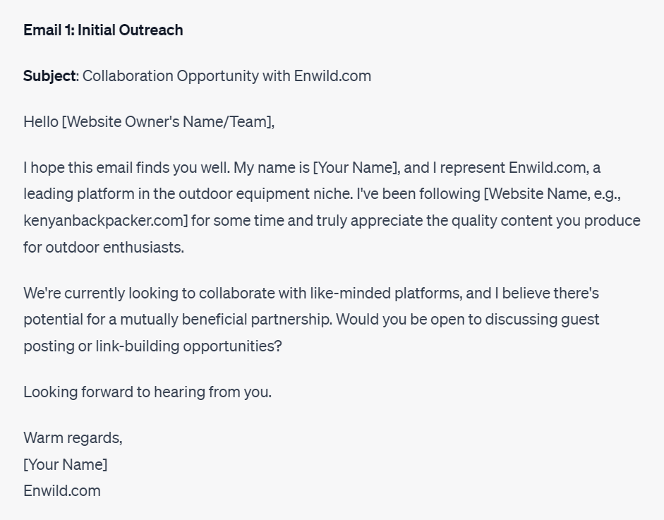 You can even ask ChatGPT to generate your entire email funnel for the guest post campaign.
