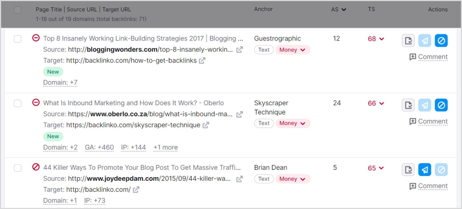 Noting the results of your audit before a link building campaign will allow you to benchmark your progress, track your campaign’s success, and monitor how your backlink profile changes over time.