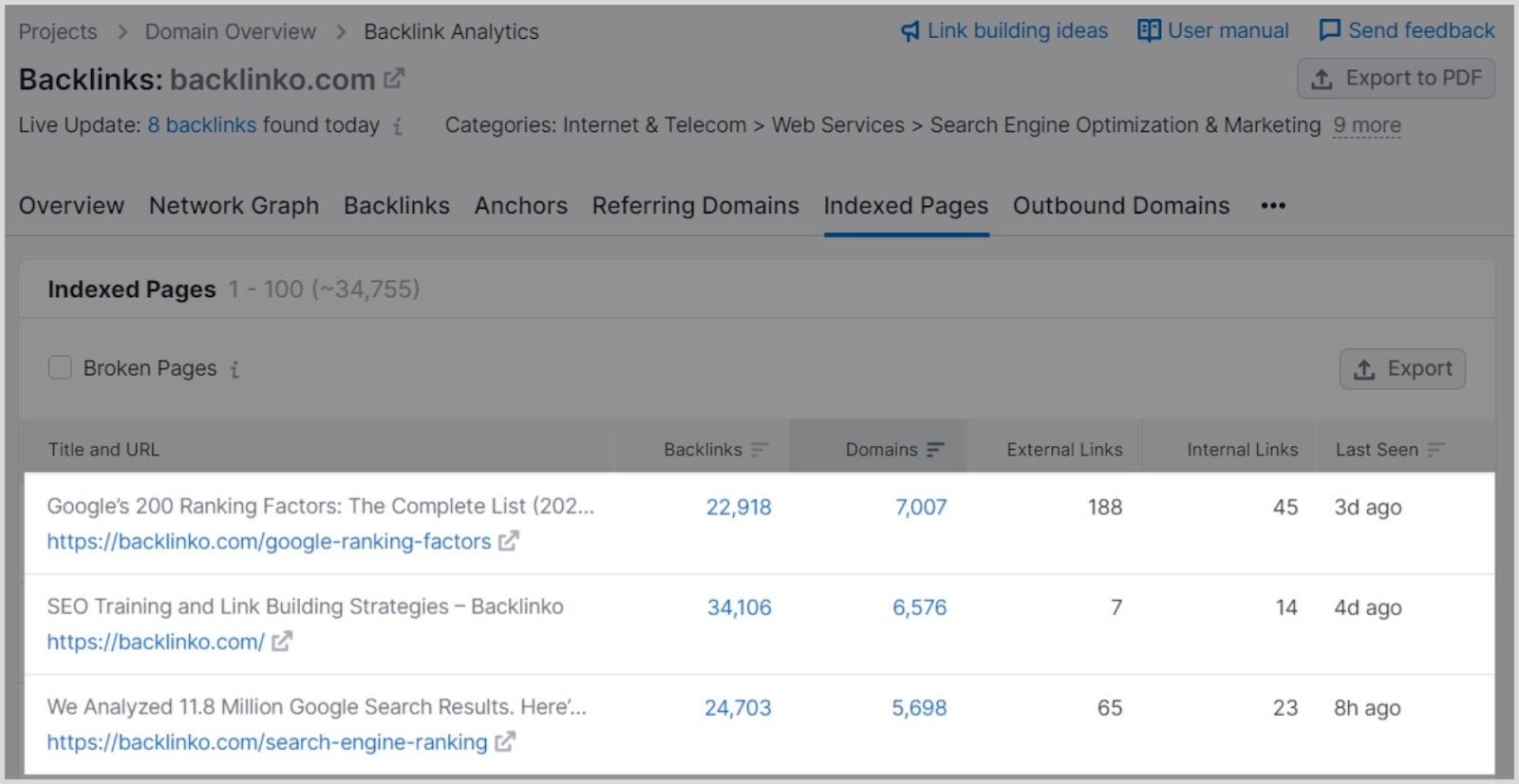 By checking how many backlinks each page on your site has, you’ll identify which pages are lacking links. Then, you’ll know where to focus your link building efforts.