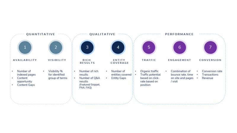 Qualitative, quantitative metrics and performance metrics are must have to do content audits and gaps.