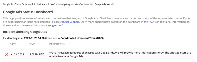 Keep checking Twitter, or the Ads Status Dashboard for more updates.