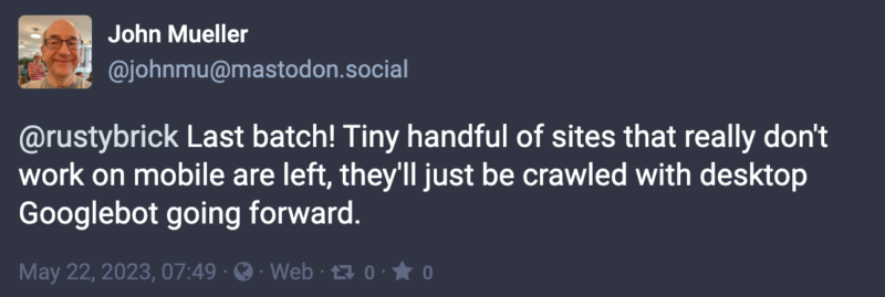 Any site not yet moved over will remain on desktop-indexing going forward.