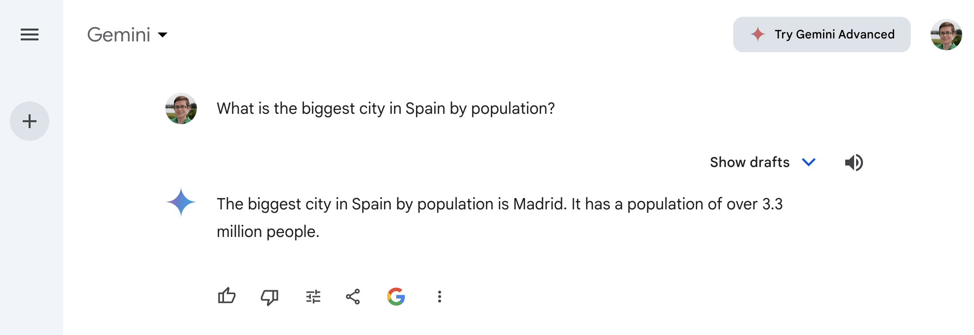 As a Google app, Gemini is integrated with many Google products. This lets you verify its responses via Google Search with one click.
