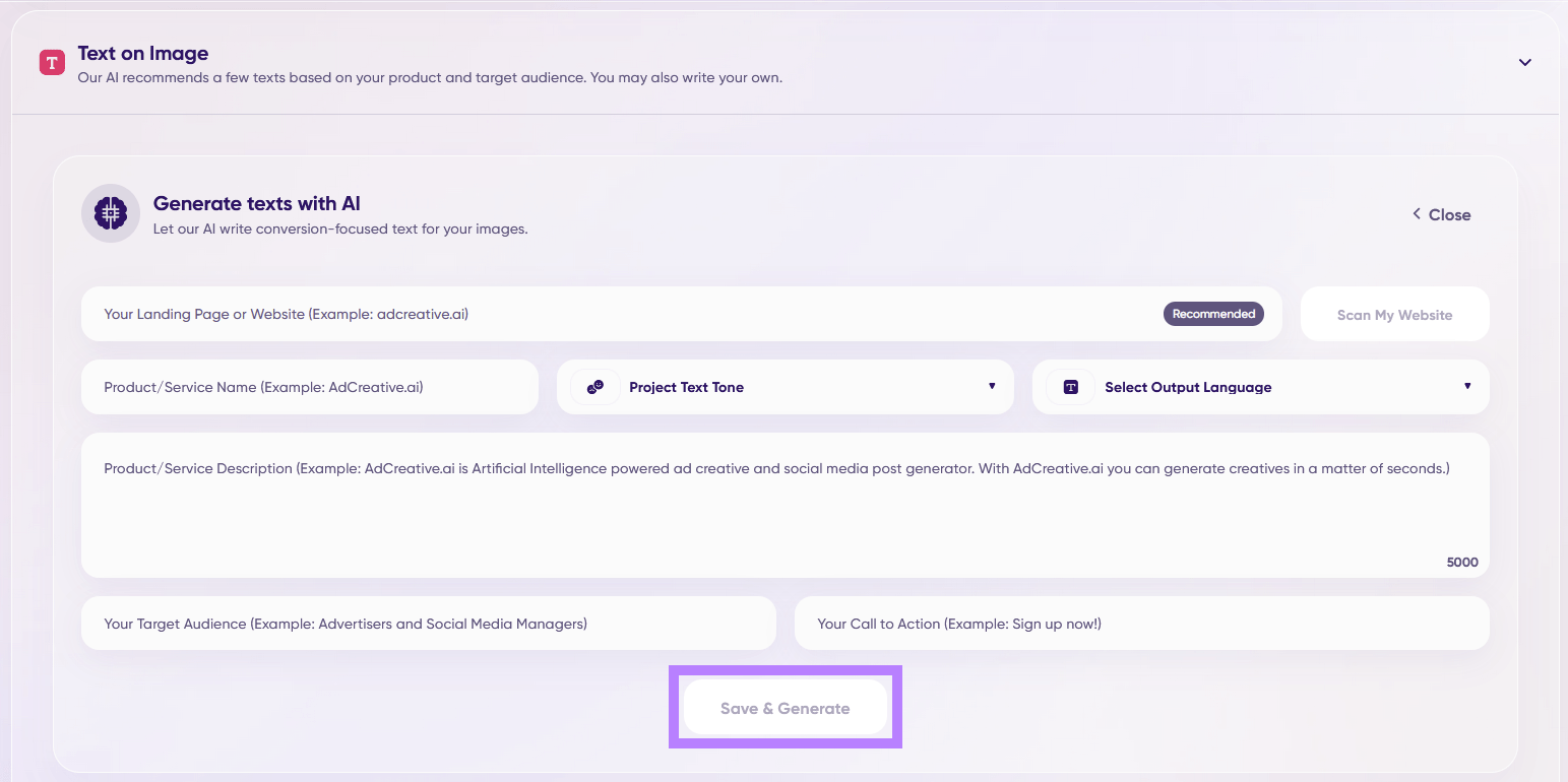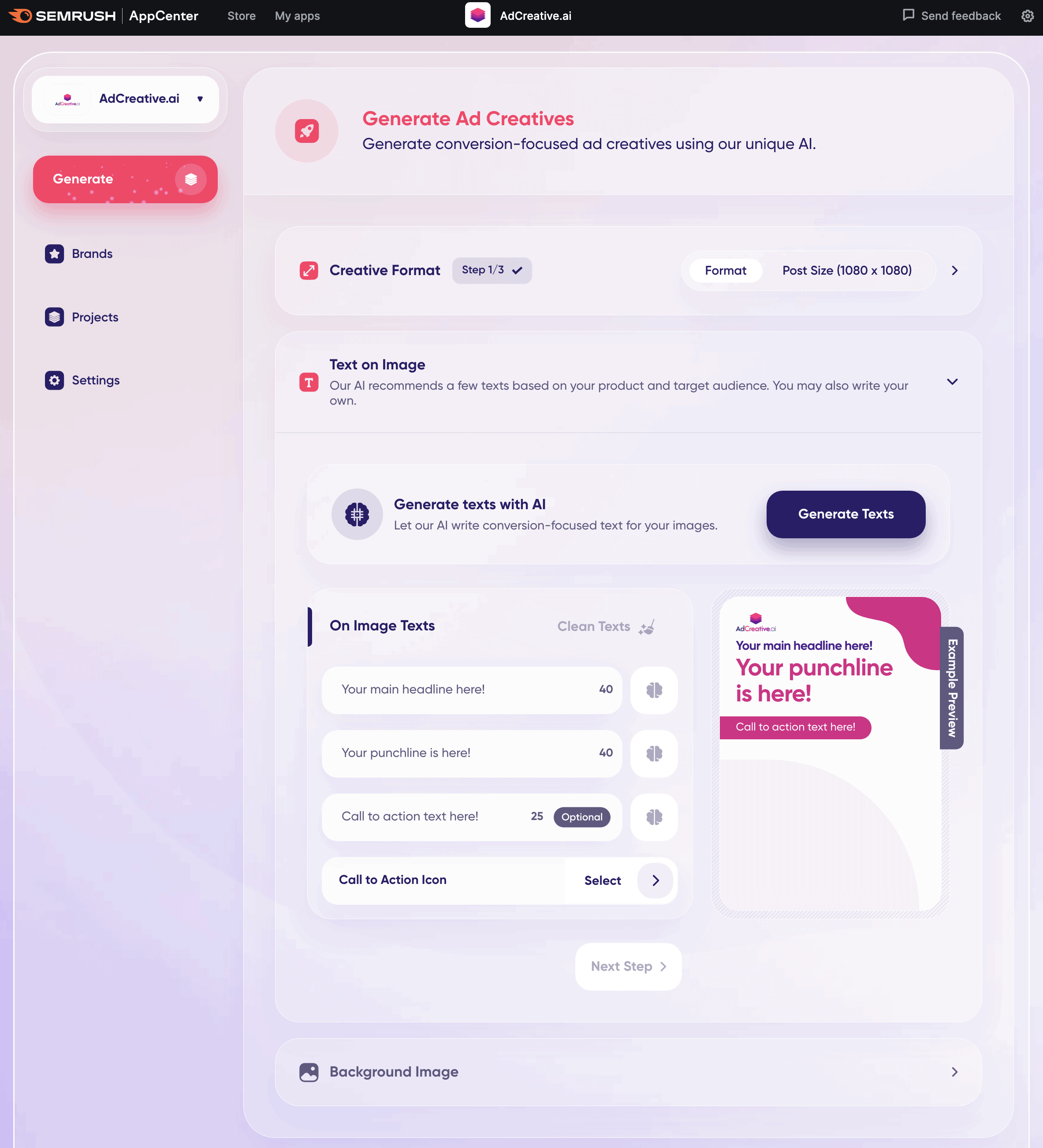 Click the “Generate Texts” button to create text with AI.