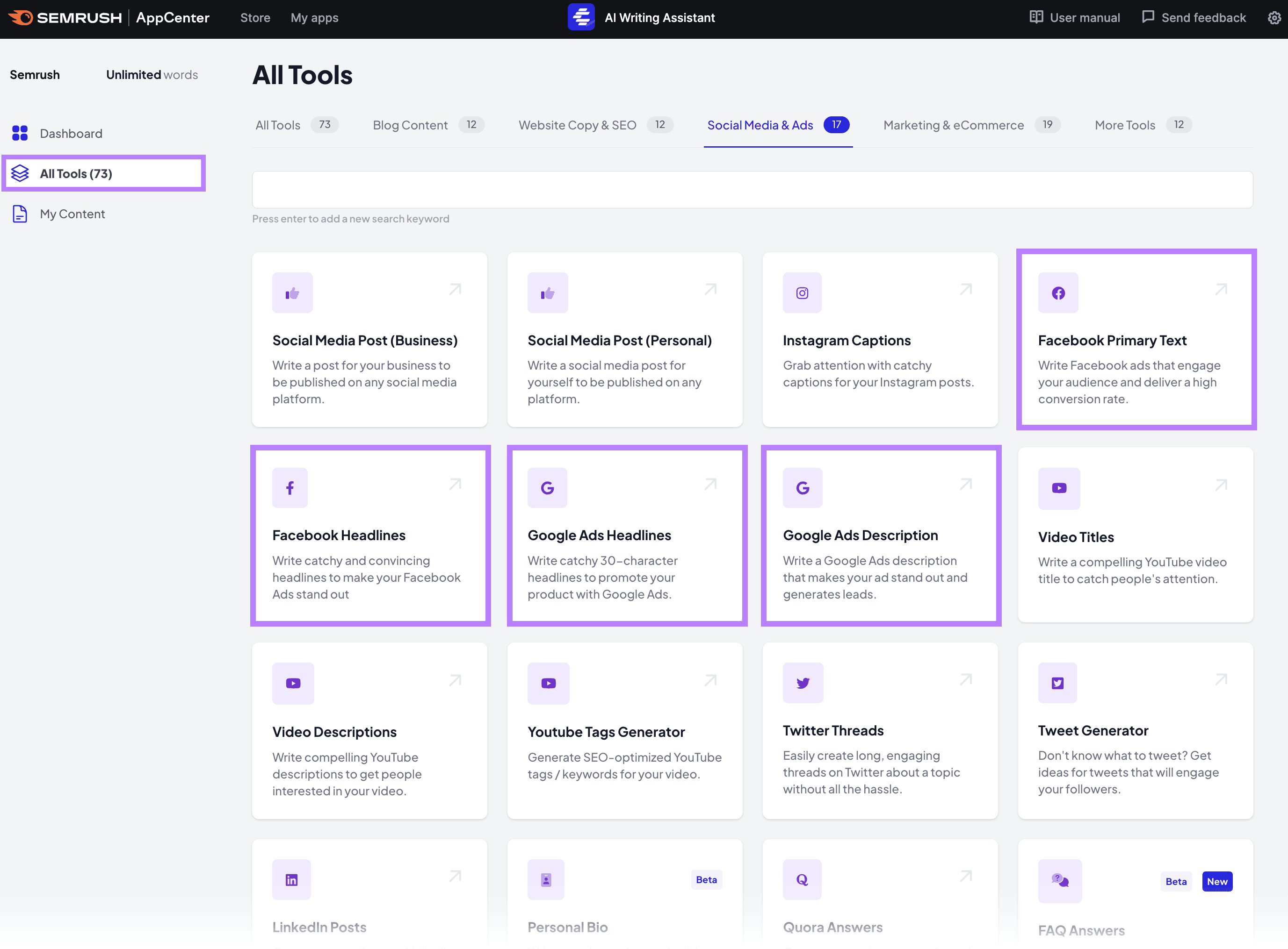 Another Semrush tool, the SEO Writing Assistant, includes AI features to help you write online marketing content faster.