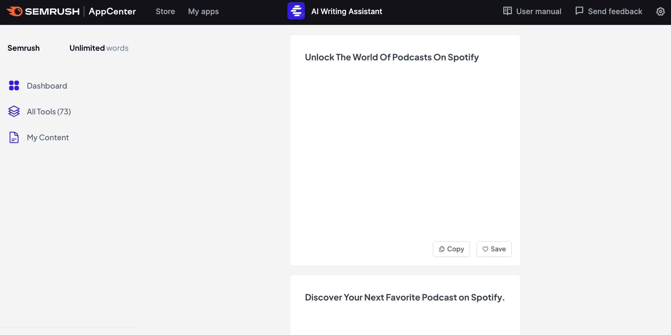 For example, a tool like Semrush’s ContentShake AI generates written and visual content in seconds.