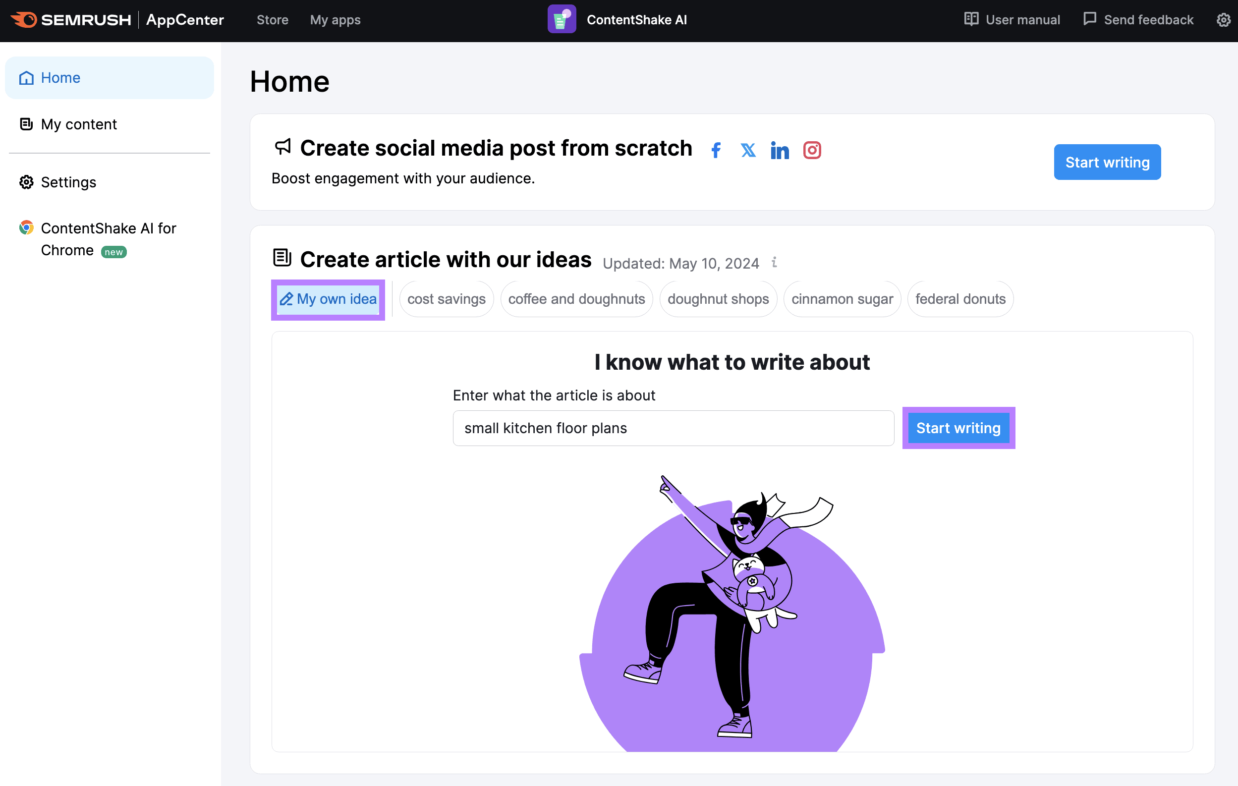 Head to the app and click “My own idea” from the main dashboard.