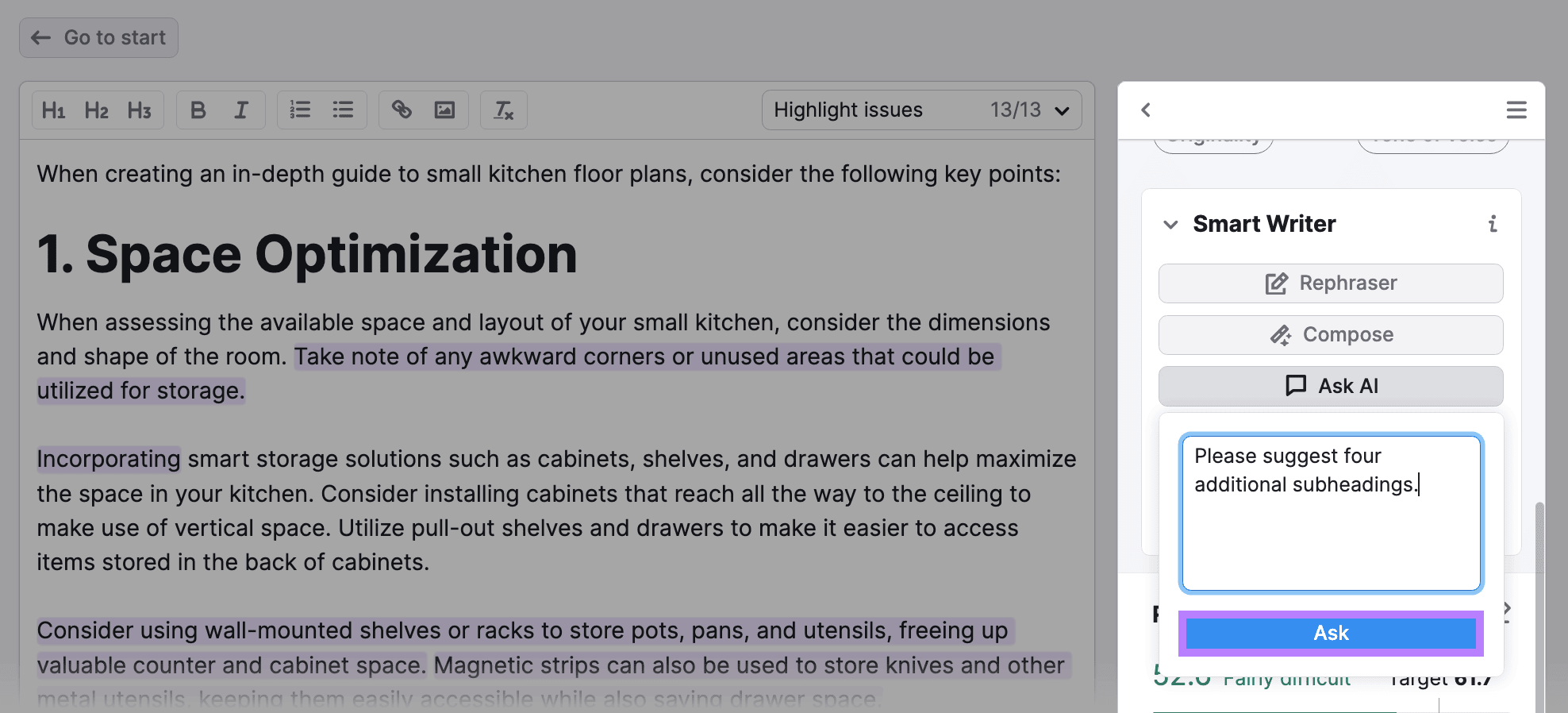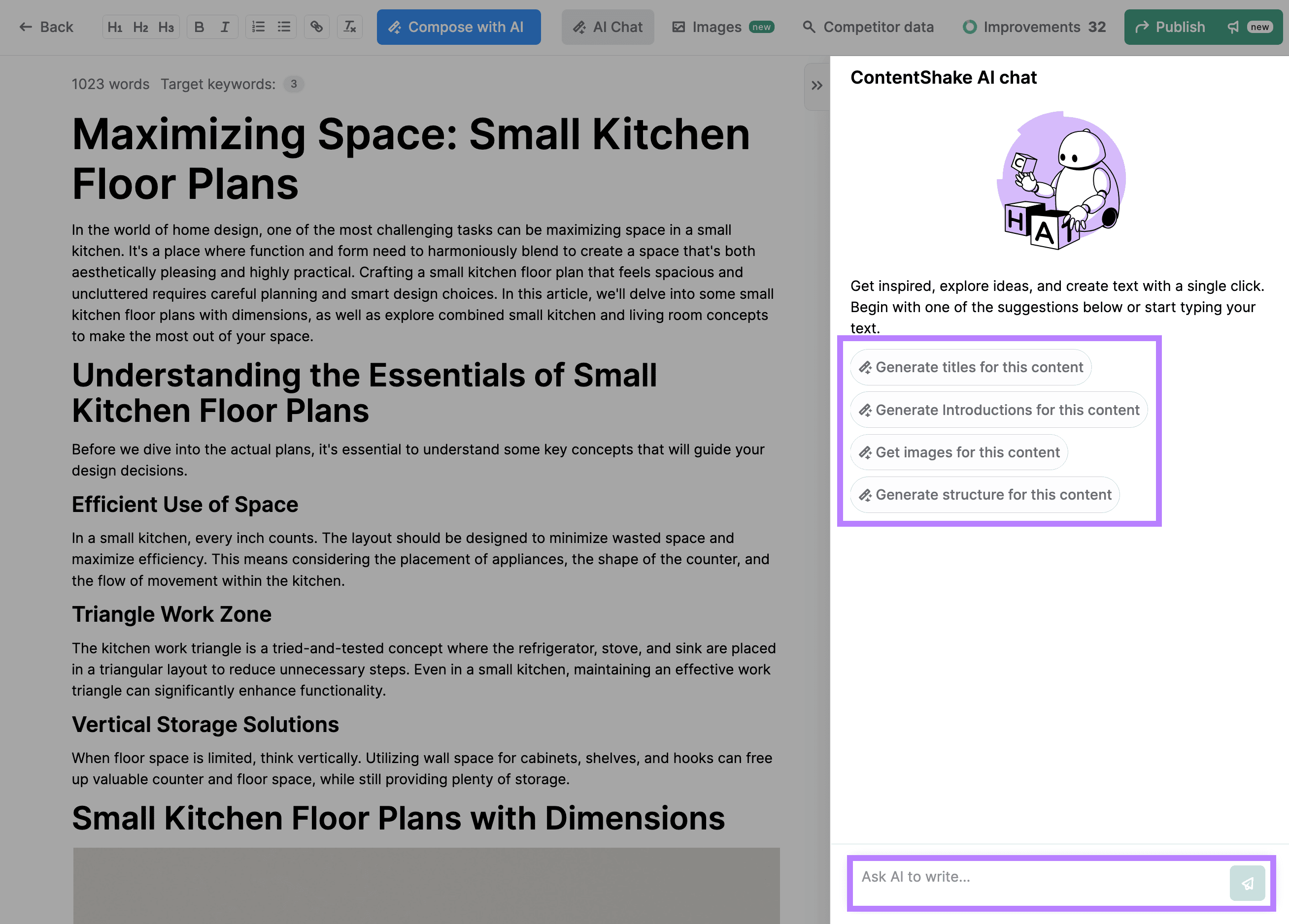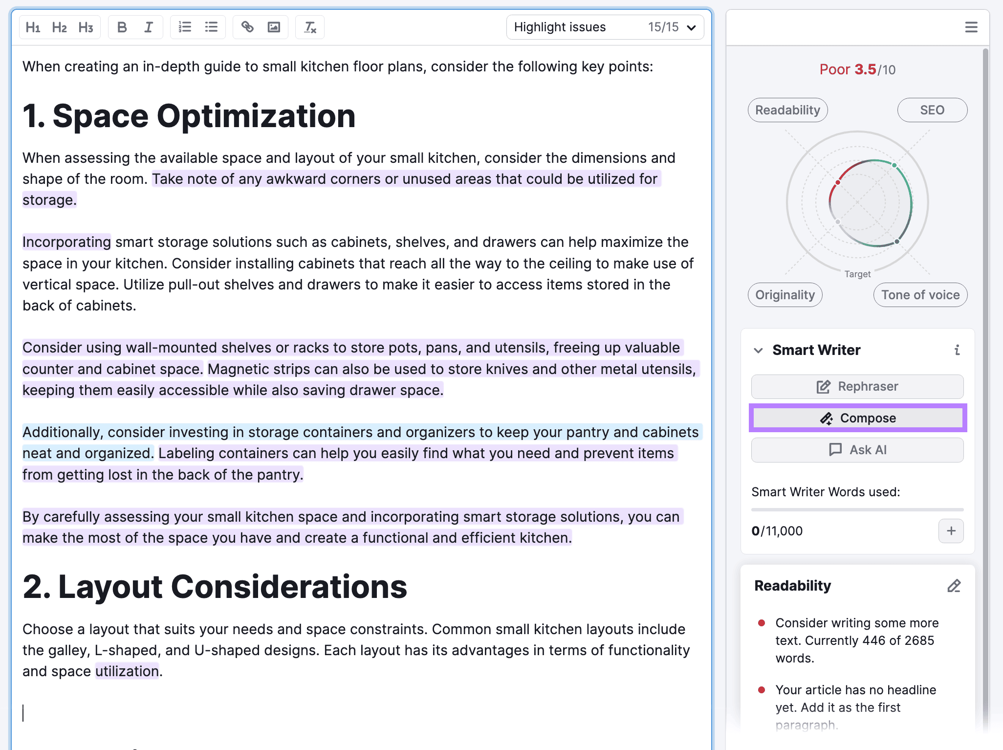 Then, use SEO Writing Assistant’s AI features to improve your writing.