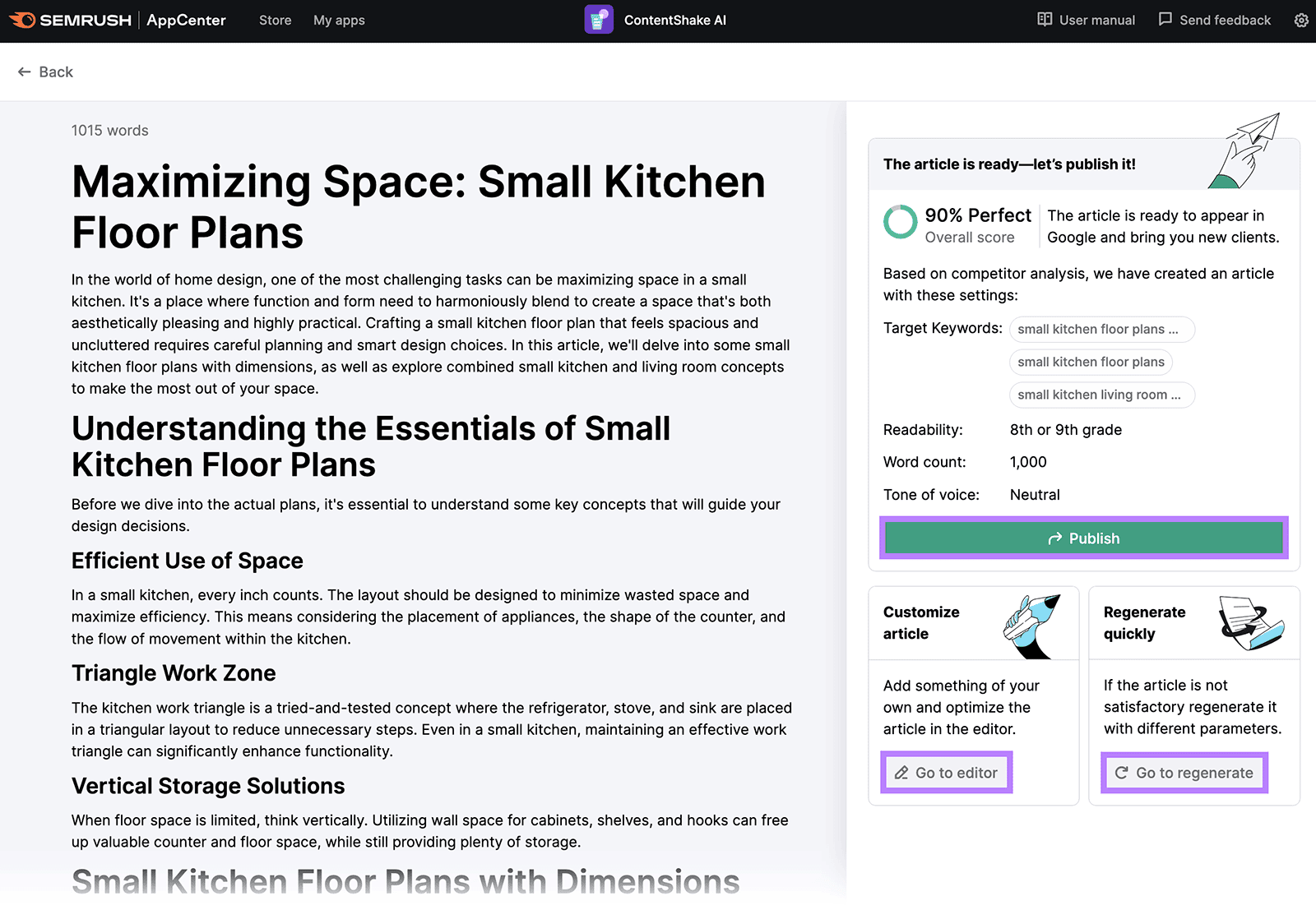 Hit “Publish” to proceed as is or “Go to regenerate” to start again.