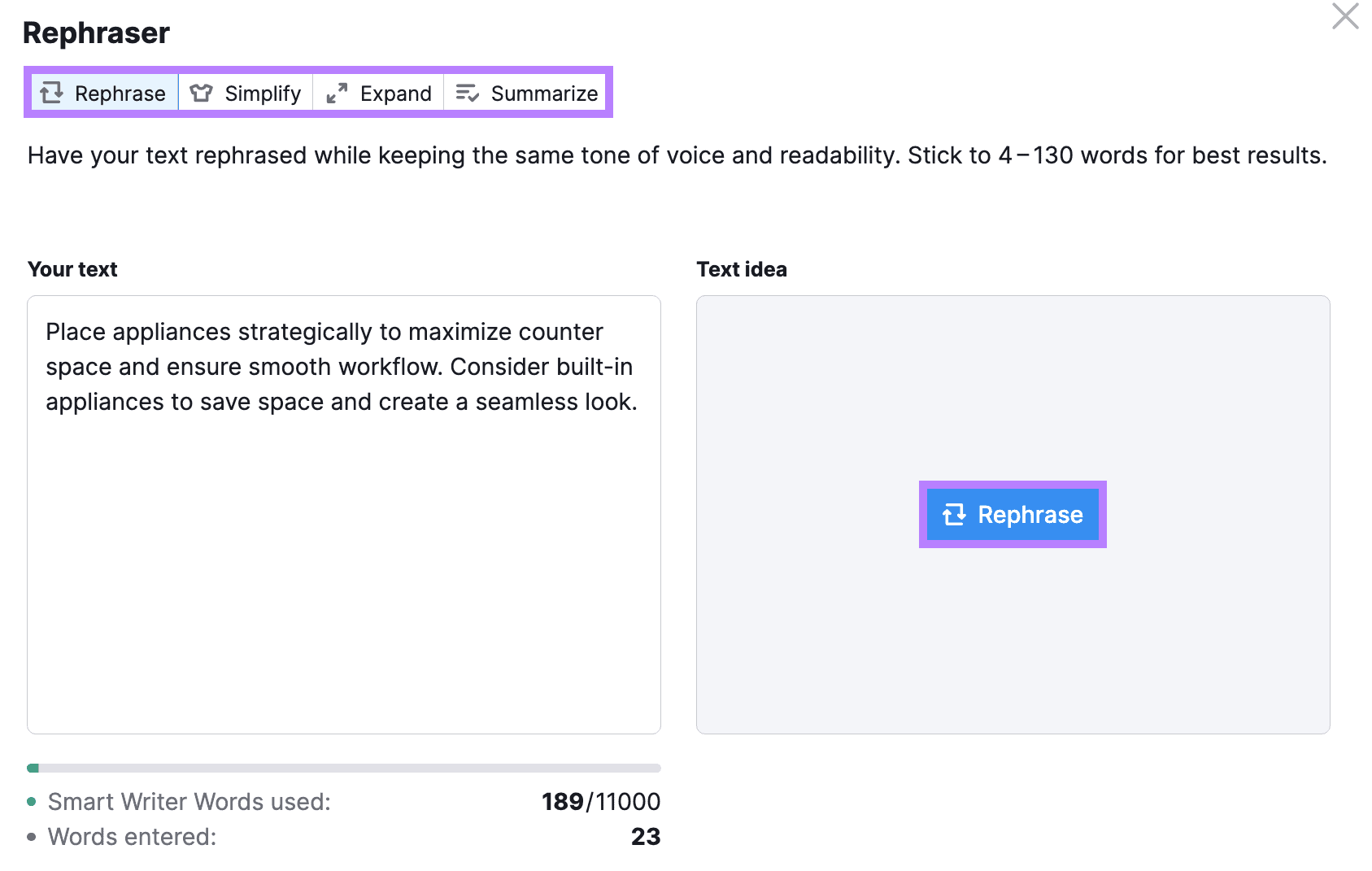 Alternatively, open the “Smart Writer” drop-down and select “Rephraser.”